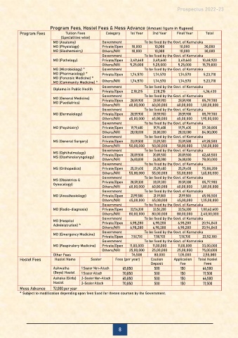 Program Fees, Hostel Fees & Mess Advance (Amount figure in Rupees)