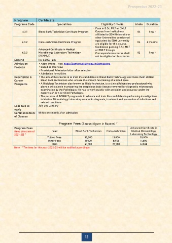 (fees structure of Head Blood Bank Technician Histo-technician Medical Microbiology