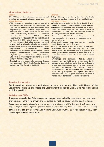 • The OPD has Ortho & Sport Physiotherapy / Joint • The college places a high value on CBR, which is a