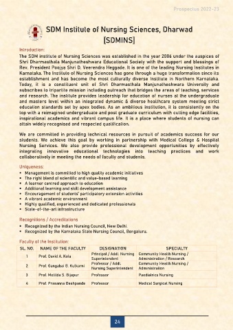 The SDM institute of Nursing Sciences was established in the year 2006 under the auspices of