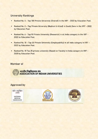 ▪ Ranked No. 2 – Top Private University (Medical & Allied) in South Zone in the IIRF - 2022